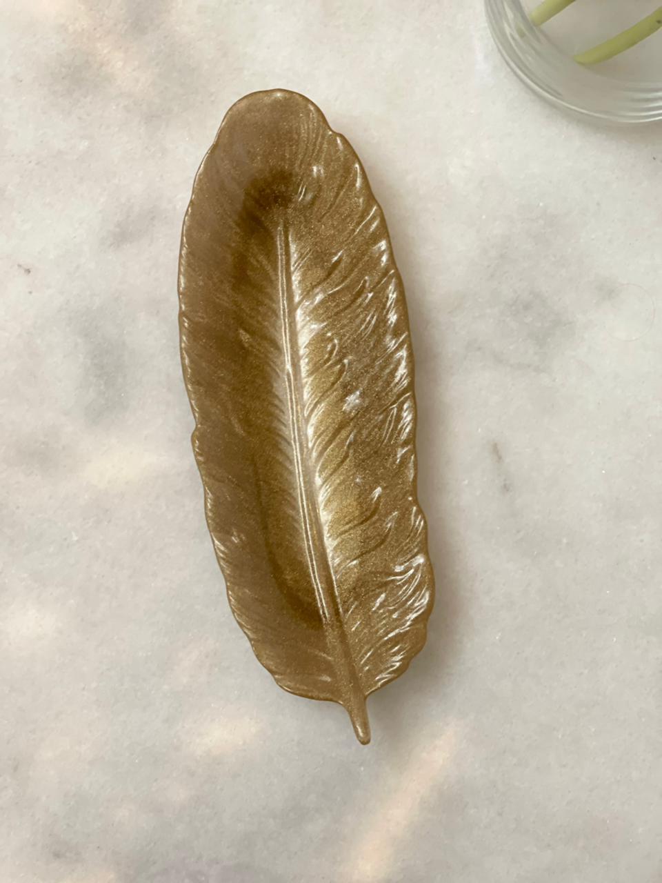 asha's Gold Feather Dish 24*8 Handmade from Resin