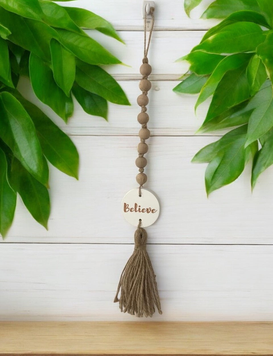 Inspire belief and positivity in your home with this "Believe" wooden bead garland, designed to add a simple yet profound... Read more