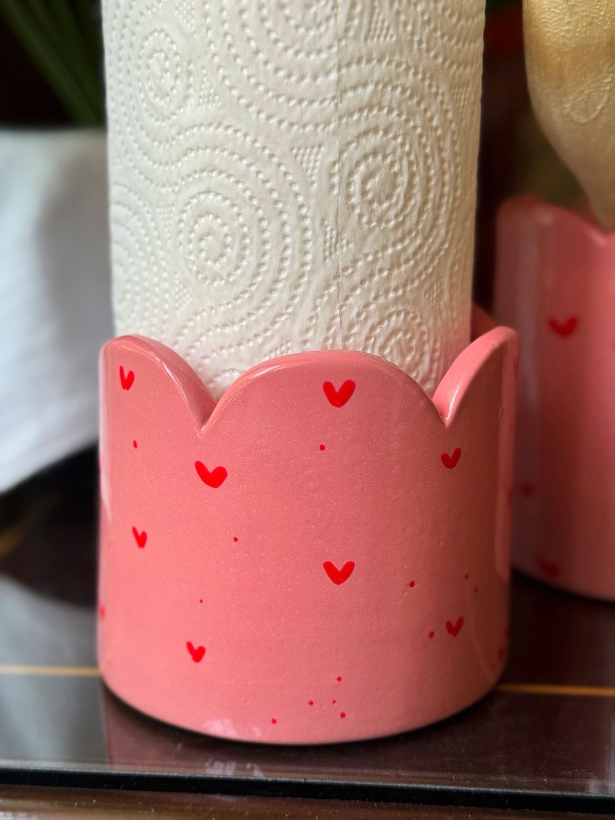 Piece of Sara Pink Hearts Tissue Holder